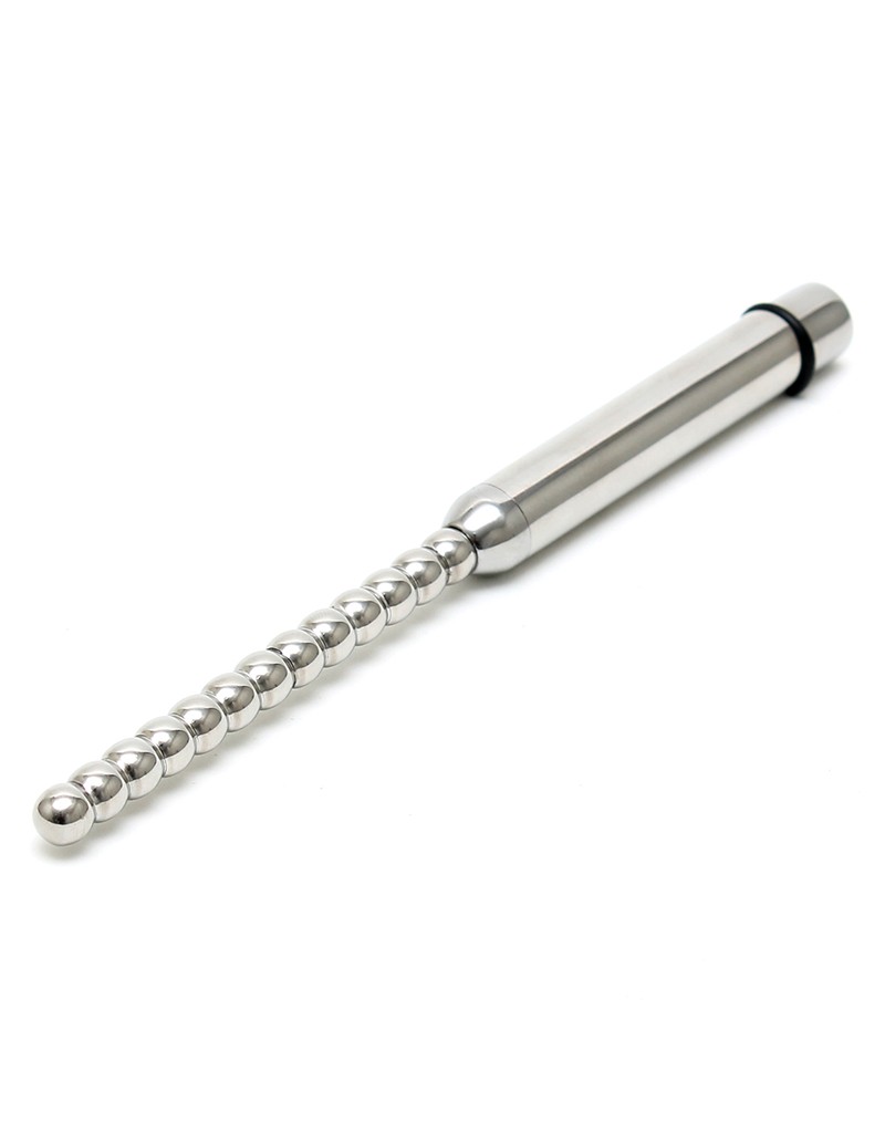 This stainless steel vibrating spherical urethral plug is 168 mm long and has a diameter of Ø 8 mm. It comes in a PU case and works with 1x AAA battery.